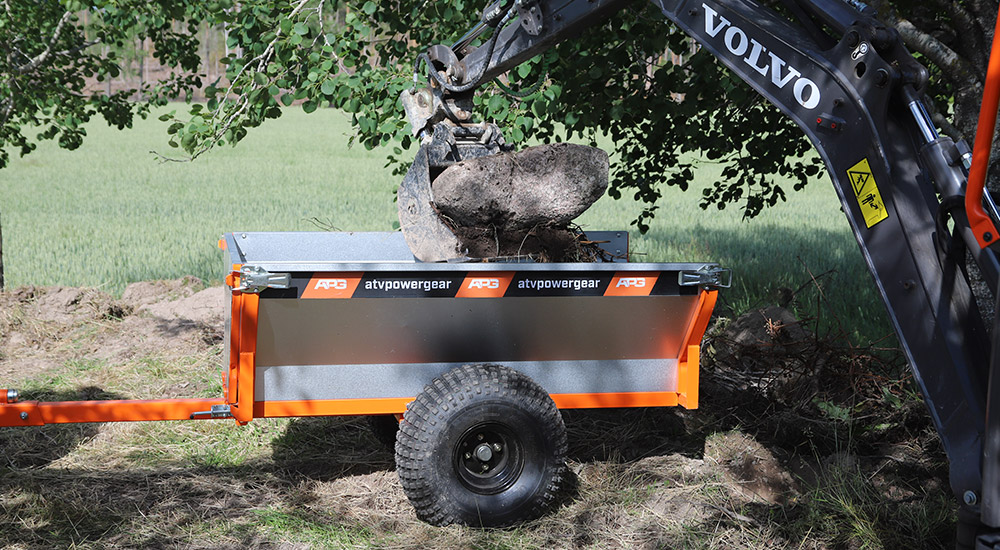 En ATV tillsammans med en gårdsvagn är därför en mycket praktisk lösning för dig som arbetar med markarbete, trädgårdsprojekt eller byggnation på tomten.